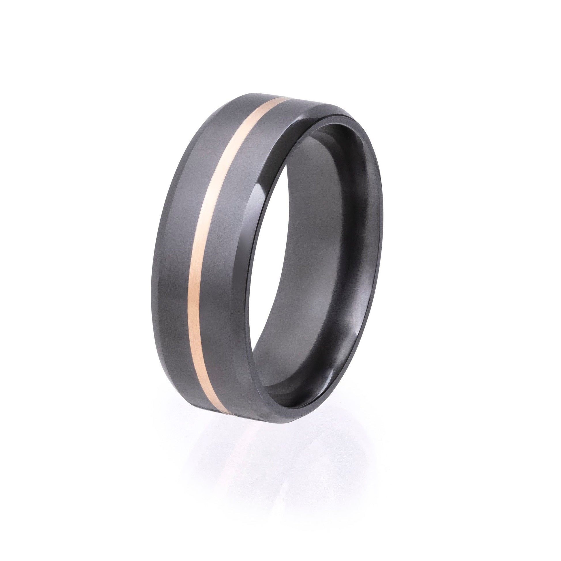 • Inlay: 1mm center inlay of 14k Rose Gold