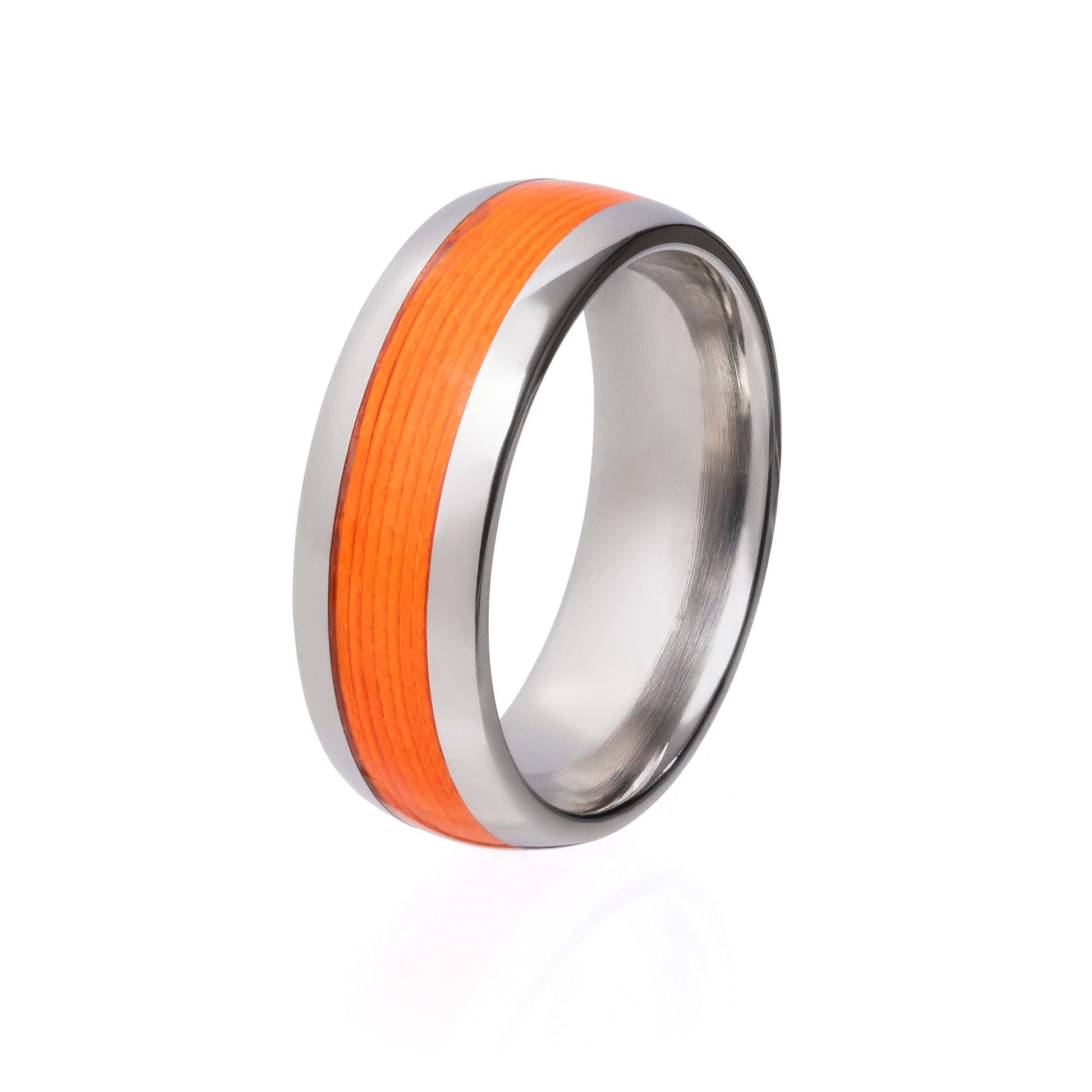 Wir präsentieren unseren maßgefertigten Herrenring aus Titan mit einem 8 mm großen, halbrunden Profil für den modernen Mann, der Wert auf Stil und Haltbarkeit legt. Dieser Ring wurde sorgfältig aus hochwertigem Titan gefertigt, das für seine Stärke und sein geringes Gewicht bekannt ist. Er ist ein Statement-Stück, das den Test der Zeit besteht. In den Ring ist eine auffällige 4 mm dicke Einlage aus leuchtend orangefarbener Angelschnur eingearbeitet, die dem Design einen Hauch von Farbe und Persönlichkeit verleiht. Diese fachmännisch eingesetzte Einlage gewährleistet Langlebigkeit bei täglicher Abnutzung und macht ihn zu einer dauerhaften Ergänzung Ihrer Sammlung. Seine Attraktivität wird durch eine polierte Oberfläche verstärkt, die Eleganz ausstrahlt und mit minimalem Pflegeaufwand einen strahlenden Glanz behält. Mit seiner bequemen Passform sorgt dieser Ring für ein bequemes und dennoch bequemes Tragen, perfekt für den täglichen Gebrauch. Ob als Geschenk oder als persönliches Vergnügen, dieser maßgefertigte Titanring verspricht eine Mischung aus Stil, Haltbarkeit und Komfort. Verpassen Sie es nicht – bestellen Sie Ihren noch heute und werten Sie Ihr Accessoire-Spiel mit diesem exquisiten Schmuckstück auf.