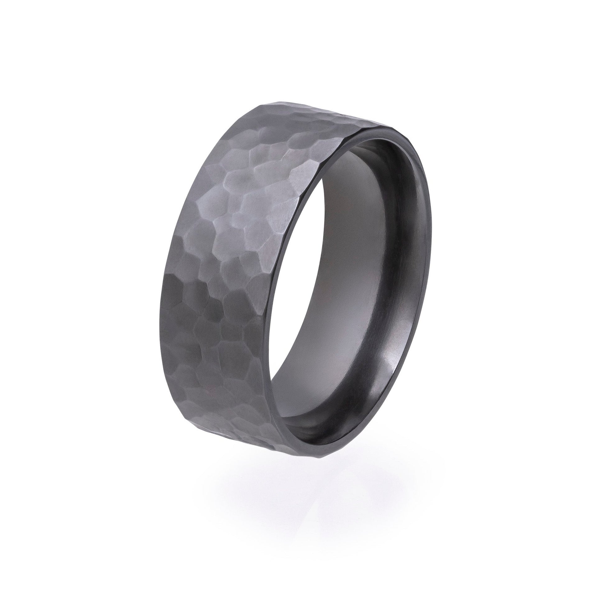 Wir präsentieren unseren eleganten und langlebigen 8-mm-Ring aus schwarzem Zirkonium für Herren, fachmännisch gefertigt mit flachem Profil und gehämmerter Oberfläche für einen Hauch von robuster Eleganz. Dieser maßgefertigte Ring wurde sowohl für Stil als auch Komfort entworfen und bietet ein bequemes Design, das dafür sorgt, dass er den ganzen Tag sicher an Ihrem Finger sitzt. Die gehämmerte Oberfläche verleiht nicht nur Struktur und Interesse, sondern verbessert auch den Griff, perfekt für den täglichen Gebrauch. Mit seiner zeitlosen Anziehungskraft und langlebigen Konstruktion ist dieser Ring ein ideales Statement-Stück für jeden Anlass. Gönnen Sie sich oder einem geliebten Menschen die perfekte Mischung aus Stil, Komfort und Qualität. Bestellen Sie jetzt und werten Sie Ihre Schmuckkollektion auf.